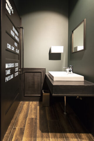 イートインスペースの奥には、存在感のあるコンテナの扉を設けました。
