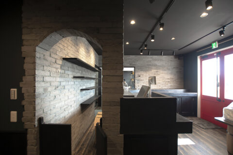木部はブラックで引き締め、空間に重厚感をプラスしています。さらにアクセントとして選んだのが古レンガ。