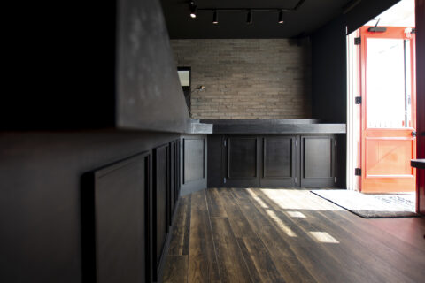 元々の店内はアメリカンテイストのビンテージ感ある空間でしたが、落ち着いた時間を過ごせるイートインスペースの創出と、トータルの雰囲気を洗練されたヨーロピアンスタイルへと一新するリフォームをご提案しました。
